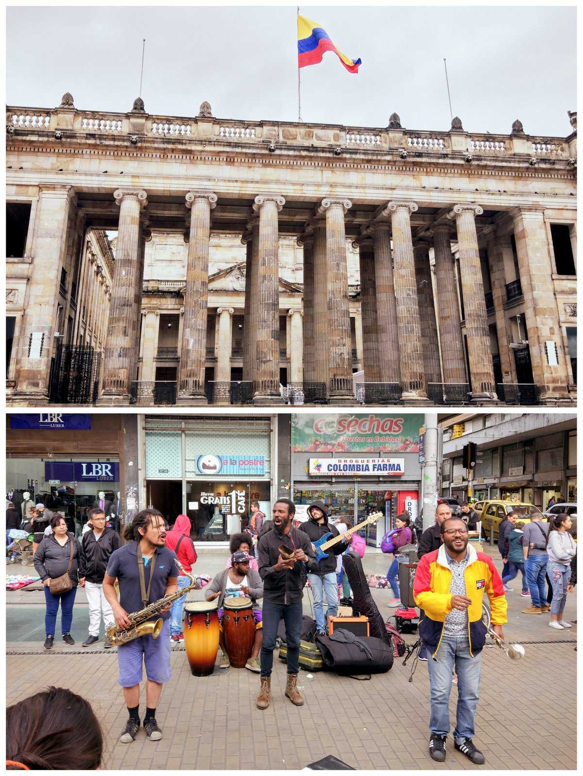 В даунтауне Боготы на площади Боливара расположены правительственные здания, а на ведущей к ней пешеходной улице часто играют уличные музыканты