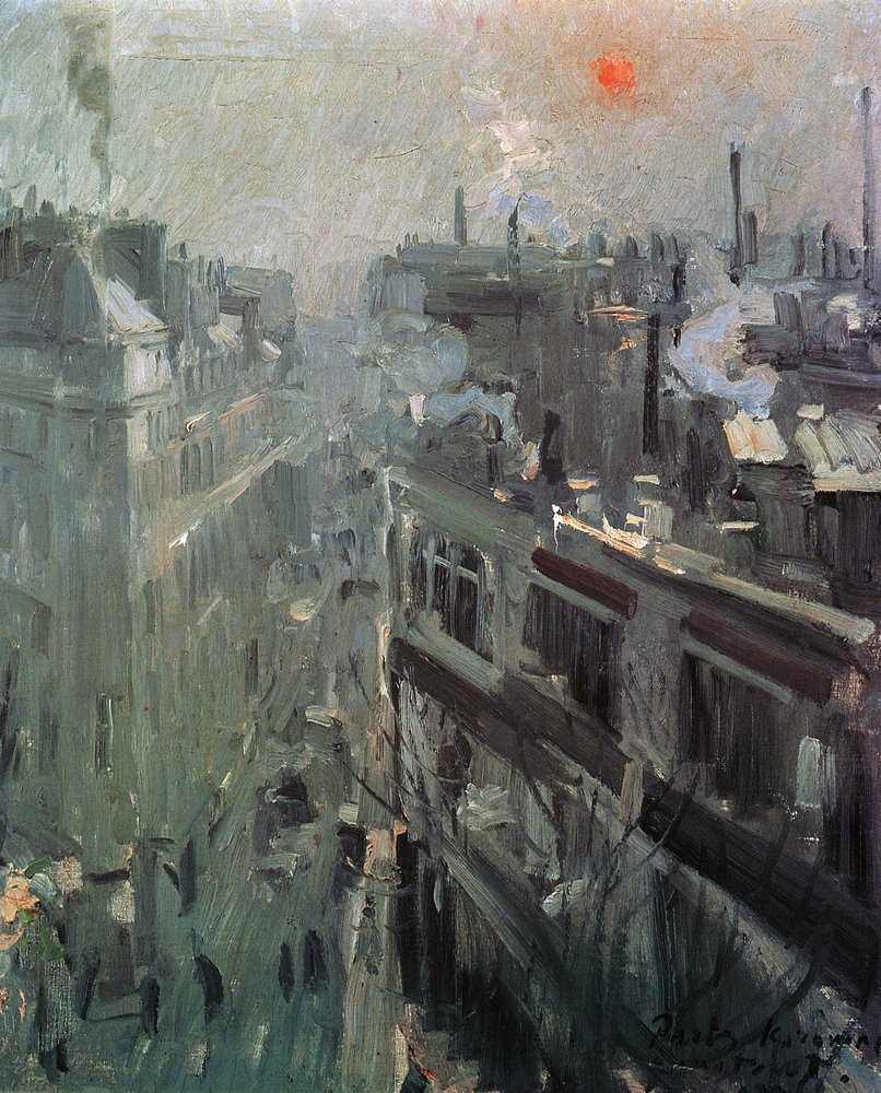 На родине импрессионизма, во Франции, Коровин впервые оказался всё в том же 1887 году. Позже художник неоднократно возвращался в Париж, а с 1922-го до конца своих дней жил там в эмиграции. О первом знакомстве с городом и его живописью Коровин вспоминал: