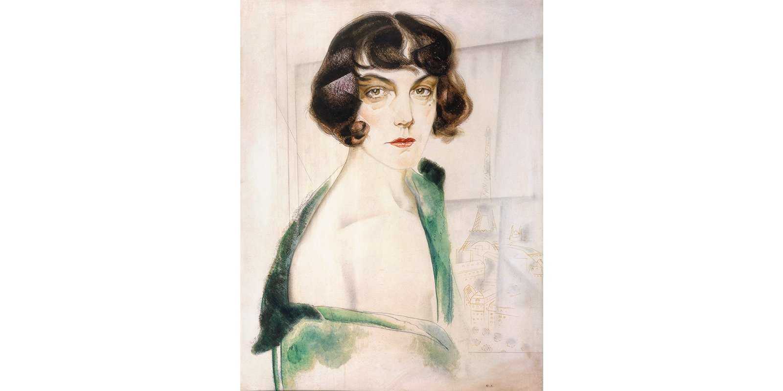 «Портрет неизвестной в зеленом на фоне Эйфелевой башни (портрет Марианны Заркенау)». 1924 год. Из собрания ГМО «Художественная культура Русского Севера» в Архангельске
