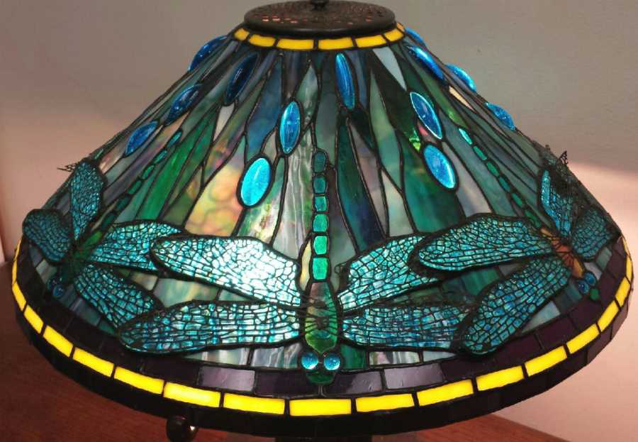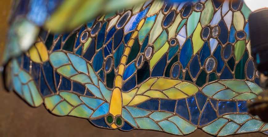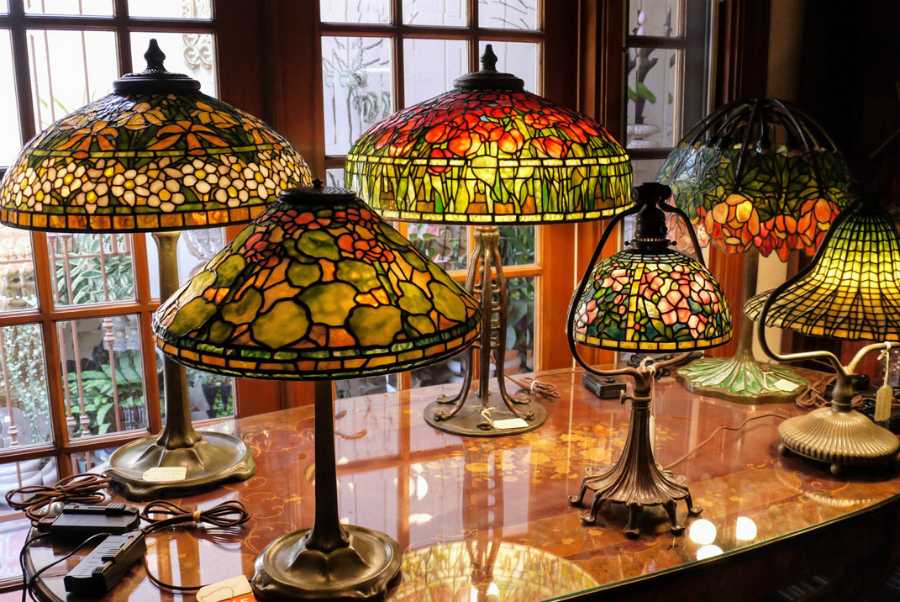 Но главной «фишкой» ламп Тиффани были именно абажуры. Они, как и витражи, изготавливались из особого вида стекла, называемого опалесцентным. Такое стекло прекрасно пропускало естественный свет, но сквозь него ничего не было видно.