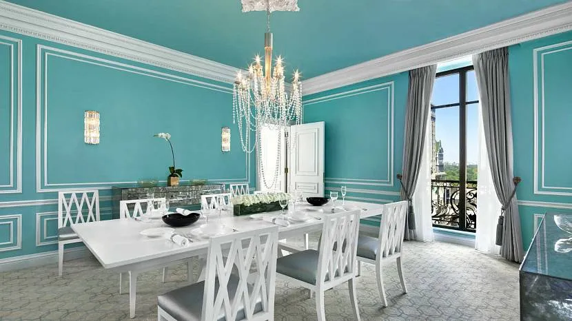 Дизайнерский ремонт с уклоном на стиль тиффани требует внимательного оформления. Отделку стоит выбирать в зависимости от способов освещения комнаты. Главное, чтобы палитра хорошо смотрелась, как при естественном, так и при искусственном свете.