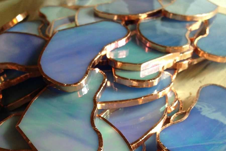 Вначале на бумаге в цвете рисовался узор будущего абажура. Затем — к узору подбирались разноцветные стеклышки. При этом края каждого стеклышка оборачивались медной фольгой. Затем все стеклышки размещались на нарисованном на бумаге узоре и соединялись между собой оловянной спайкой. Тонкая и кропотливая работа, но это было лишь началом.