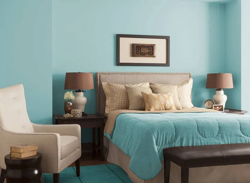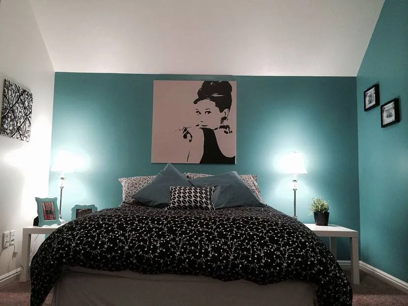 Организация интерьера спальни в стиле тиффани с отделкой стен бирюзовой краскойИсточник Pinterest