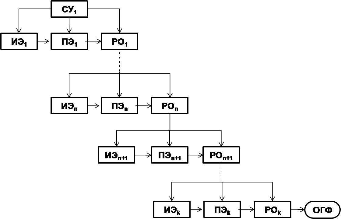 С функциональной точки зрения такая машина является каскадом из k элементарных машин, причем, рабочий орган n-ной машины является системой управления (n+1)-ой машины: