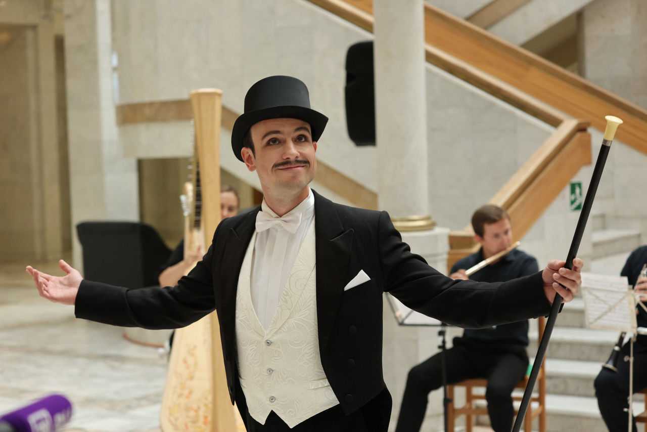 Здание РНБ на Московском проспекте просто создано для перформансов в стиле Сергея Дягилева: музыканты Академического ансамбля Санкт-Петербурга со скрипками, арфой и другими инструментами выглядели крайне гармонично в этих стенах. Артисты шоу-балета Светланы Соколовой и Марии Савиной поразили гостей не только подчеркнуто асинхронными танцами на ажурных лестницах библиотеки, но и диковинными костюмами в стиле художника, дизайнера и сподвижника Сергея Дягилева – Леона Бакста.