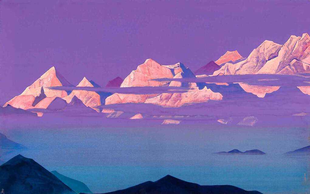 Розовые горы. Картина написана в 1933 году. В настоящее время хранится в собрании Нью –Йорского музея Николая Рериха. Всего художником написано до двух тысяч картин, посвященных Гималаям.