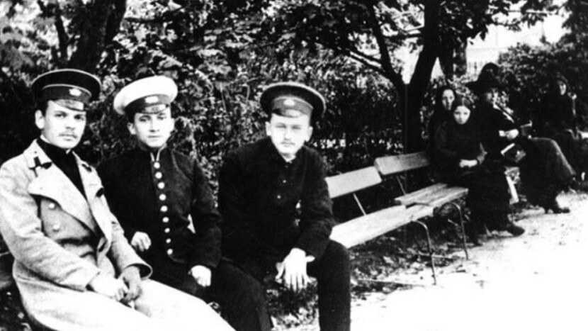 Молодой гимназист К. Г. Паустовский (крайний слева) с друзьями