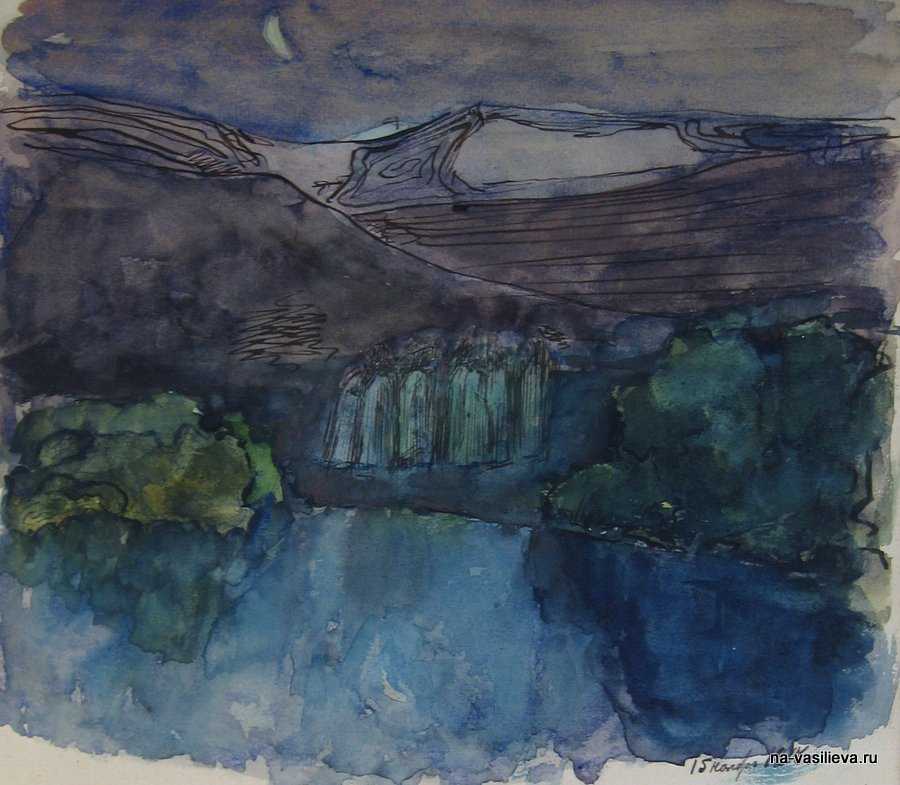 Открываем выставку акварелью «Ночной пейзаж»