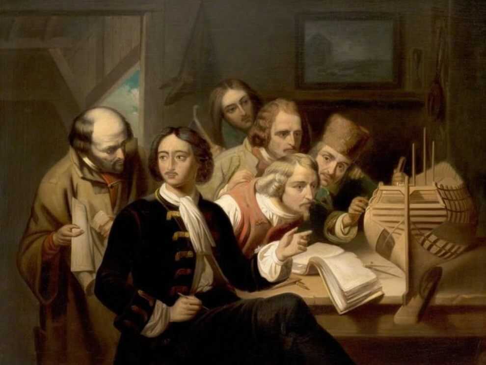 С 1697 по 1698 годы Великое посольство объехало все развитые страны: Австрию, Голландию, Англию и пр. Уже на месте Петра заинтересовали передовые технические достижения цивилизованных соседей. Он изучал кораблестроительство, беседовал с мастерами и ремесленниками. Настаивал, чтобы его спутники, пользуясь случаем, обучались наравне с ним.