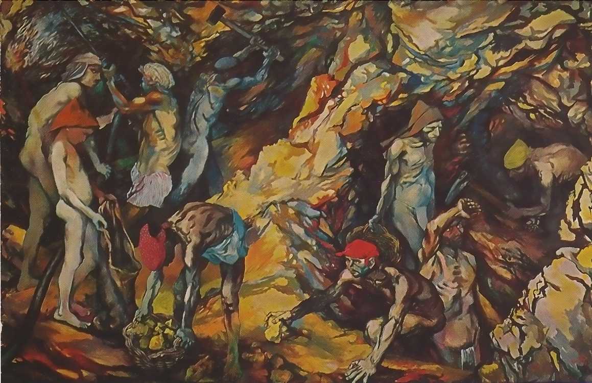 В пятидесятые годы Гуттузо пишет картины о рабочих серных копей, сицилийских крестьянах, рыбаках. Он дает нам глубокие и непреходящие образы Сицилии спящий или мертвый возчик; дети с рыбой, как маленькие зверьки на скалах; раненый рабочий, желтый от серной пыли красота грубая без риторики и эстетства.