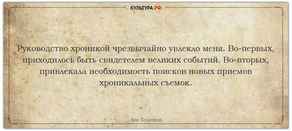 Его гениальные открытия в области монтажного кинематографа, в том числе знаменитый «эффект Кулешова», считаются основой основ языка кино.