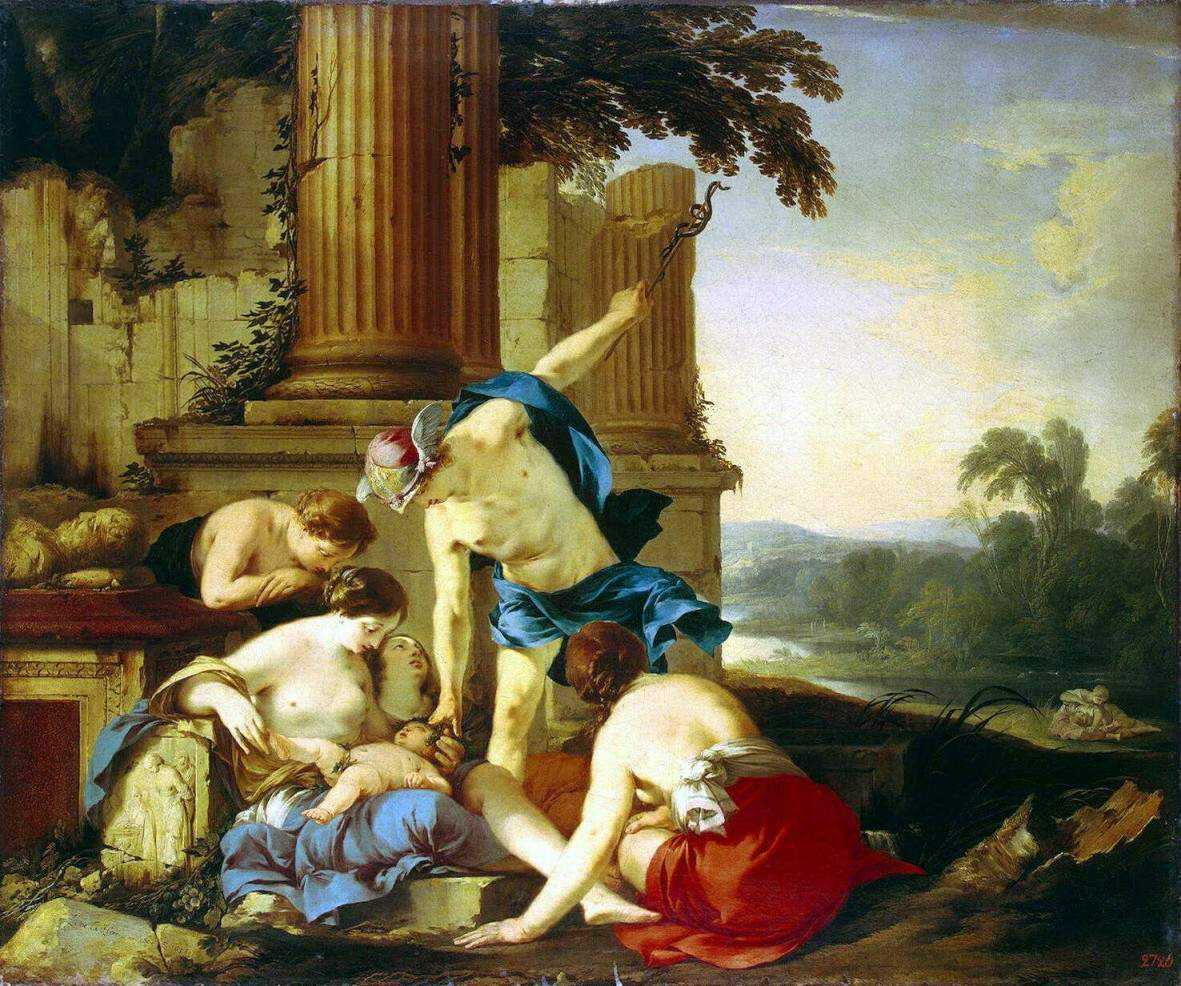Одна из самых красивых и детальных картин в честь Меркурия принадлежит авторству Лорана де ла Гира, французского художника эпохи барокко. Его стиль отличается мягкостью, приятными золотистыми тонами, объёмом и продуманным расположением предметов и фигур в пространстве. Поэтому на полотно так приятно смотреть, оно будто оживает перед глазами.