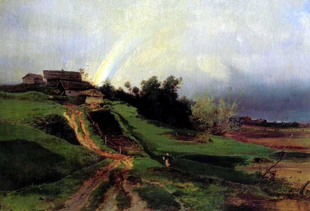Полотно под названием «Радуга» не имеет эффекта панорамы и деталей, свойственных сентиментализму.