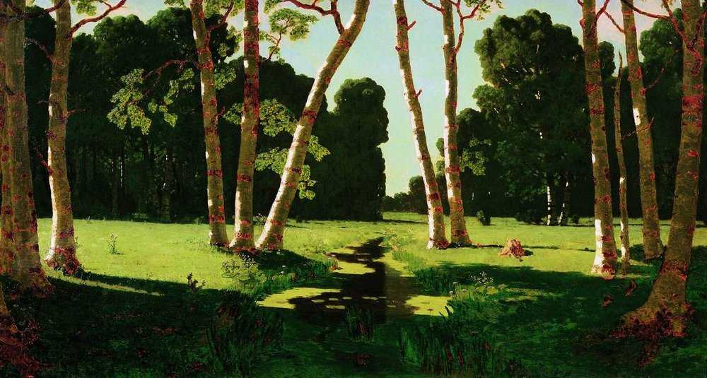 Берёзовая роща – символ России. Часто изображается художниками и всегда по разному. Эта картина написана в 1879 году, находится в Государственной Третьяковской галерее, в Москве. Эта картина и ещё две картины художника («Север», «После дождя») были показаны на VII передвижной выставке в 1879 году. Картина поражает своей яркостью и радостным единением с природой. В газете «Молва» Куинджи обвиняют в том, что он перезеленяет свои работы, что возможно и послужило поводом ухода художника из Товарищества. Автор таких обвинений был коллега по Товариществу М. Клодт.