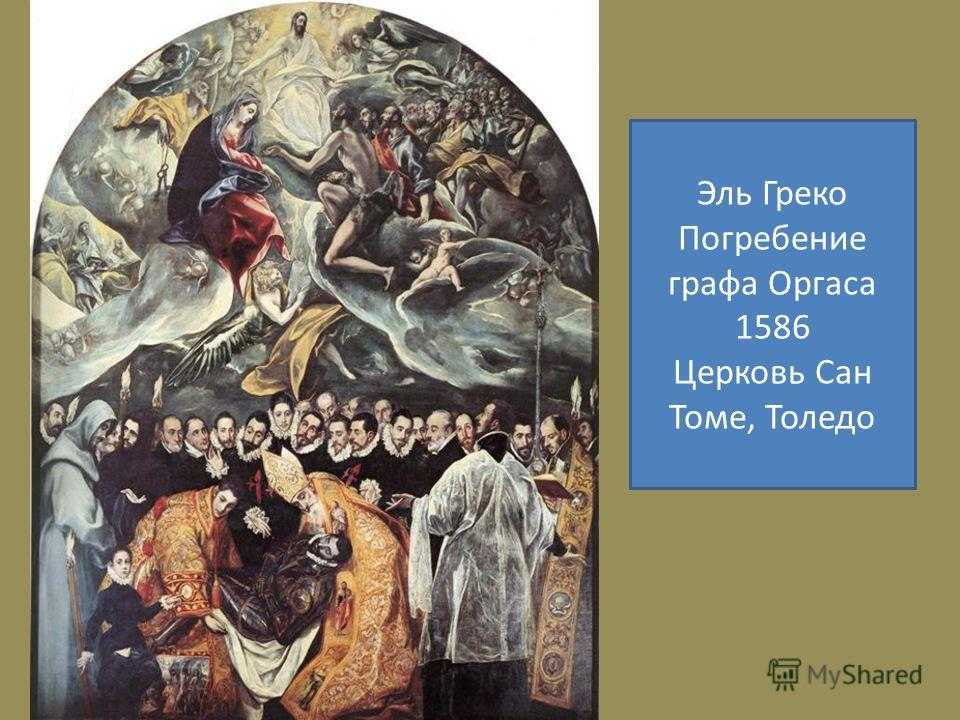 Презентация на тему: » Эль Греко. 2 часть. Эль Греко. 2 часть.. Толедо Эль Греко Погребение графа Оргаса 1586 Церковь Сан Томе, Толедо.» — Транскрипт: