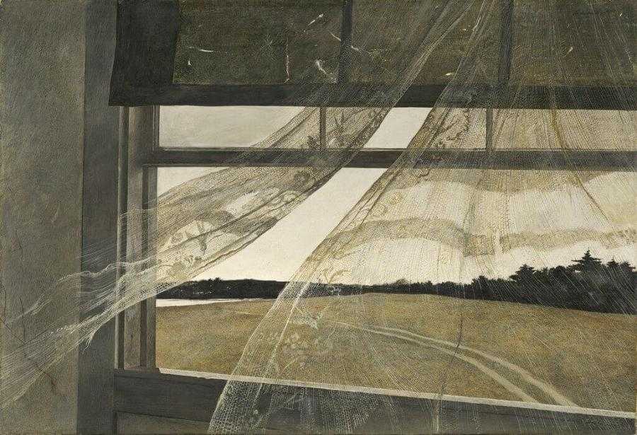 Одна из лучших картин мастера — «Ветер с моря» — также имеет отношение к Кристине. Однажды Уайет зашёл на второй этаж её дома, куда она не поднималась и где не убирались…
