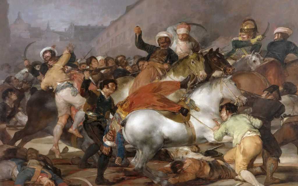 В 1808 году Испания была оккупирована Наполеоном. 2 мая началось народное восстание, к вечеру подавленное французскими войсками. Дикая расправа с побежденными запечатлена Гойей в картине «Расстрел повстанцев в ночь на 3-е мая».