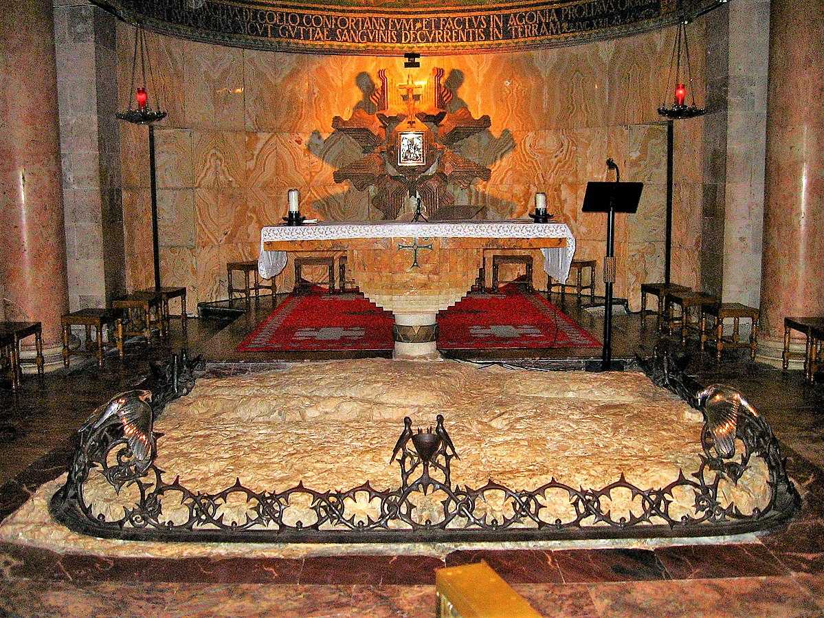 Камень, на котором молился Христос, и алтарь церкви Всех Наций