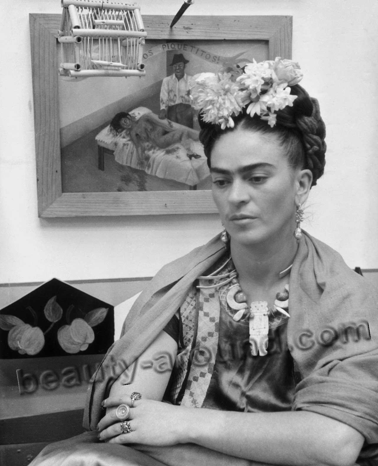 Фрида написала около 70 автопортретов. Первая ее работа «Авария” была написана всего через год после катастрофы. Трагические события жизни художницы окрашивали ее картины во все более мрачные тона. Чем хуже было ее внутреннее и физическое состояние, тем ужасающе выглядели ее работы. Фрида не боялась открыто выражать чувства, что было сразу видно по ее откровенным произведениям. Анатомия человеческого тела, уродства и патологии – все это помогало открыто выражать чувства художницы. Наиболее известными работами Фриды стали следующие картины: