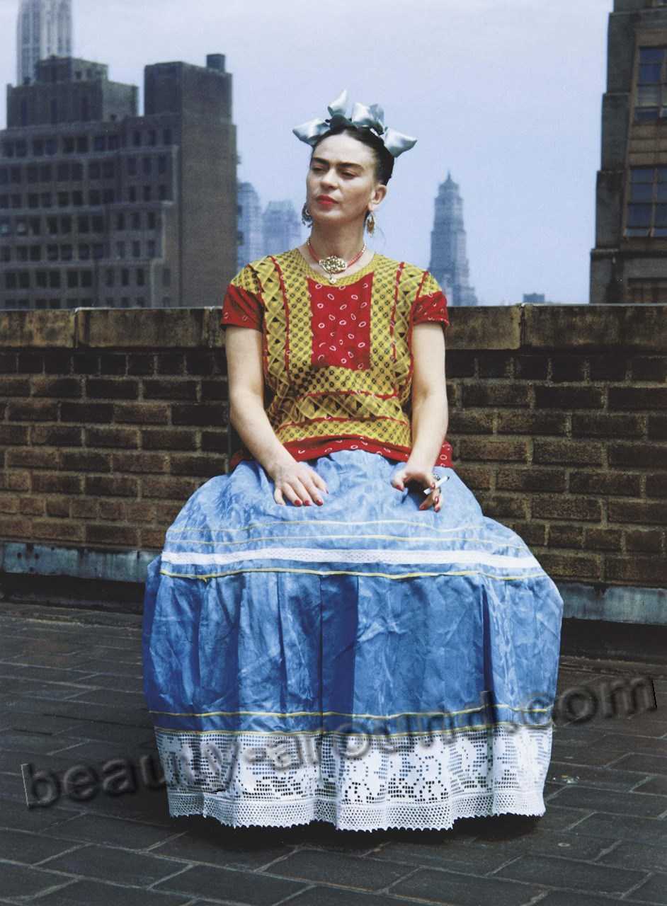 В начале тридцатых годов ее муж отправился в Соединенные Штаты, и художница устремилась вслед за ним. Там была непривычная для нее обстановка тотальной индустриализации, против знакомой мексиканской размеренности и медлительности. После этого она стала намного острее ощущать связь с родной страной, национальными традициями и культурой своих предков. Фрида стала коллекционировать предметы прикладного искусства, а надоевшие серые юбки сменила на цветастый национальный костюм.