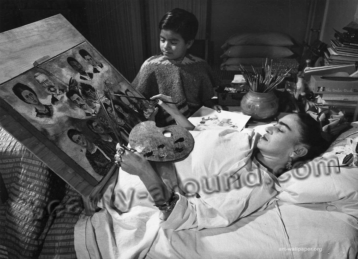 Для Фриды сделали специальный подрамник, позволявший писать лежа. Под балдахином кровати прикрепили большое зеркало, чтобы Фрида могла видеть себя. Она начала с автопортретов.