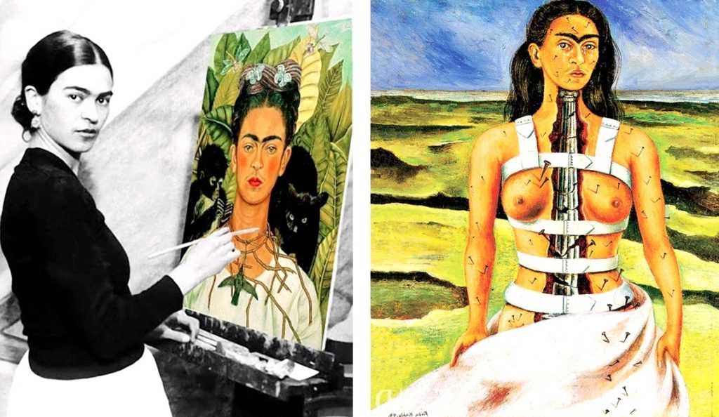 На протяжении целого года девушка была лишена возможности вставать с постели, ее страшно тяготило вынужденное бездействие. Именно тогда она вспомнила о своем интересе к живописи и стала писать первые картины. По её просьбе, отец принес в больницу кисти и краски. Он сконструировал для дочери специальный мольберт, который располагался над кроватью Фриды таким образом, чтобы она могла рисовать в лежачем положении. С этого момента и начался отсчет в творчестве великой художницы, которое в ту пору выражалось в основном в её собственных портретах. Ведь единственное, что девушка видела в зеркале, подвешенном под кроватным балдахином, было ее лицо, знакомое до мельчайшей черточки. Все непростые эмоции, вся боль и отчаяние, отражались в многочисленных автопортретах Фриды Кало.