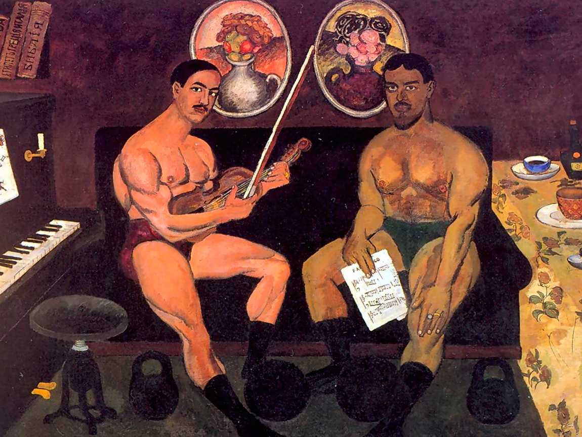 Илья Машков. Автопортрет и портрет Петра Кончаловского (фрагмент). 1910. Государственный русский музей, Санкт-Петербург