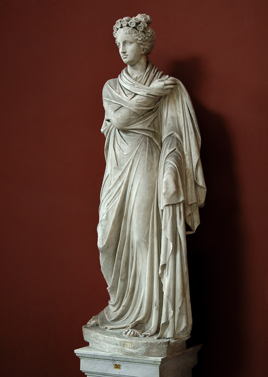 Женская статуя, реставрированная как Эвтерпа. Мрамор. Ватиканские музеи, Музей Пия—Климента, Зал муз. Рим, Италия