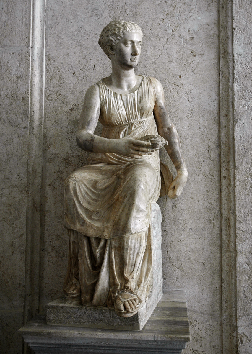 Муза. Лунский мрамор. Римская работа 117—138 гг. по эллинистическому оригиналу. Голова современная. Капитолийские музеи, Новый дворец, Галерея.Рим, Италия