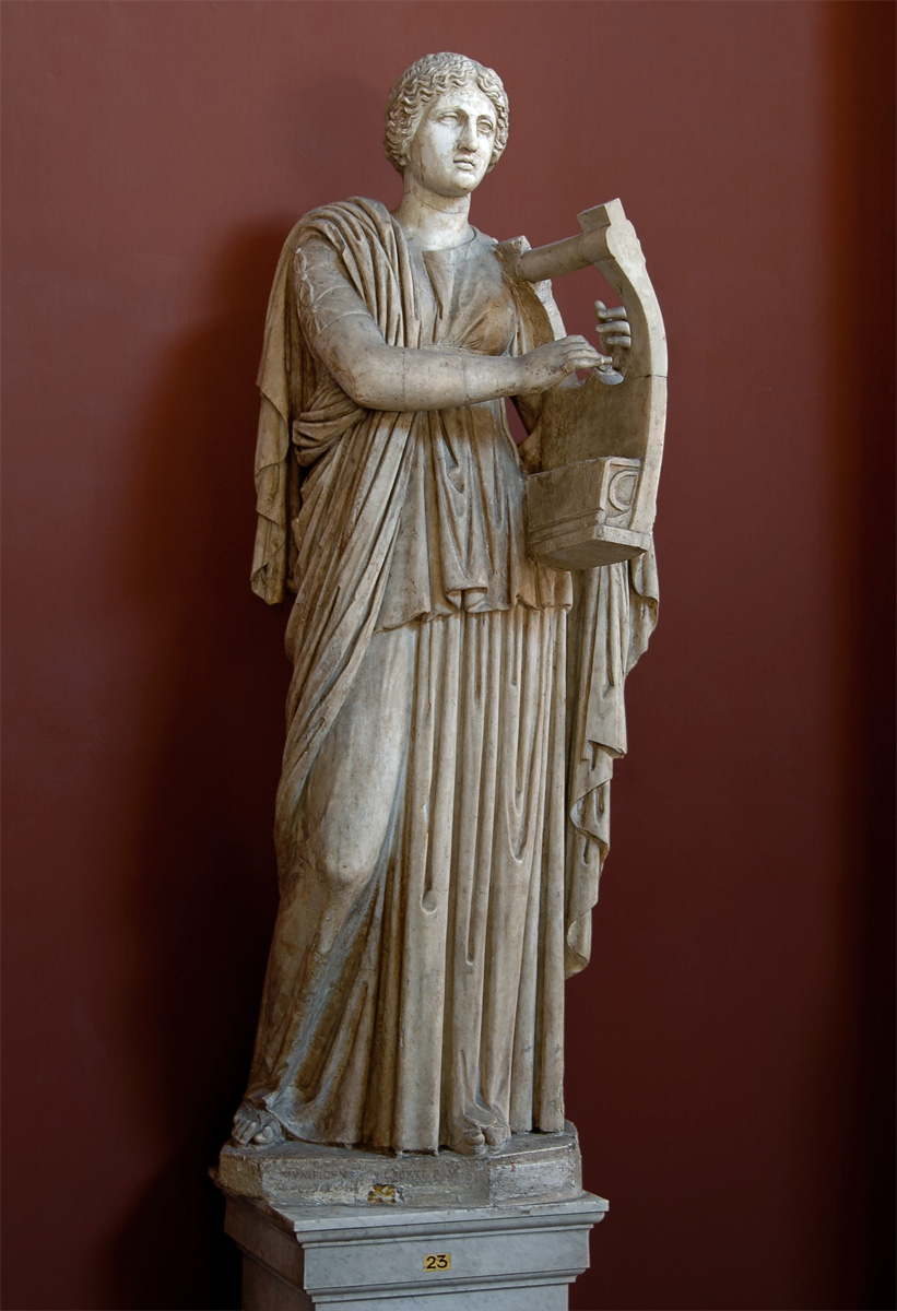 Статуя Эрато. Мрамор. Римская работа II в. Ватиканские музеи, Музей Пия—Климента, Зал муз. Рим, Италия