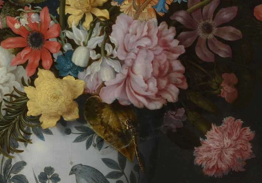 Главная идея цветочного европейского натюрморта 17 века выражается одной фразой: «Сделайте мне богато!» Самые ранние голландские панели оставили сдержанного и наивного том Ринга далеко позади, и расцвели десятками ирисов, роз и ландышей. Фламандские же картины были еще роскошнее голландских. Со временем растений становилось все больше, художники писали их всё тщательнее и тоньше, картины пропитались обильным пОтом живописца, как и любил покупатель. В дорогой картине обязательны были сотни однотипных деталей: многочисленные виды цветов, бабочки, былинки, ползущие по стеблям гусеницы, больные листья с дырками, ракушки, прожилки, мошки, мушки, мышки, блики, роса, муравьи. В жанре на протяжении века торжествовали подробности, одинаковость и единомыслие – нужны были роскошь и детали, роскошь и детали, роскошь и детали. Выбор цветов для букета, определенные виды насекомых или ракушек, следы гниения или свежесть листьев никакого символического значения не имели. Просто цветы были модны, картины с букетами продавались, вот их и писали. Оживляя живопись джентльменским набором атрибутов.
