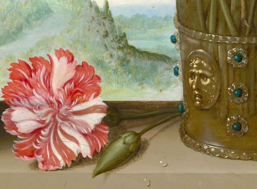 Хотя некоторые растения (не совсем уж драгоценные и доступные) и насекомые (ползающие там и тут) иногда и рисовались с натуры, но в начале 17 века естественнонаучная точность не соблюдалась вовсе: большие цветы роскошных букетов часто писали мельче, чем они были, о стеблях и листьях думали немного, цветы разных времен года традиционно сводились вместе. В искусстве научная точность и не нужна, зато можно понять, ради чего ей пренебрегали – чтобы казалось роскошно и богато. Потому же нет картин с невзрачными и обычными травками-цветочками, которые бесстыдно и ежедневно росли повсюду и которые можно было писать и рисовать с натуры.
