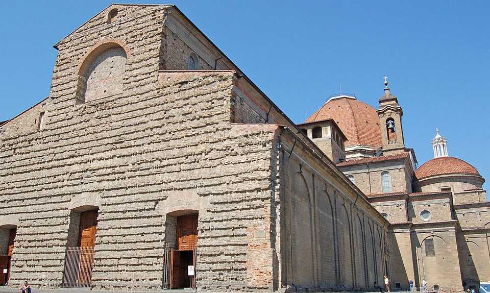 В “Базилике Святого Лаврентия” (“Basilica di San Lorenzo”) Микеланджело работал не только над надгробиями Медичи. Церковь, построенную в 393 г. при реконструкции в XV веке дополнили Старой Сакристией по проекту Филиппо Брунелле́ски (Filippo Brunelleschi).
