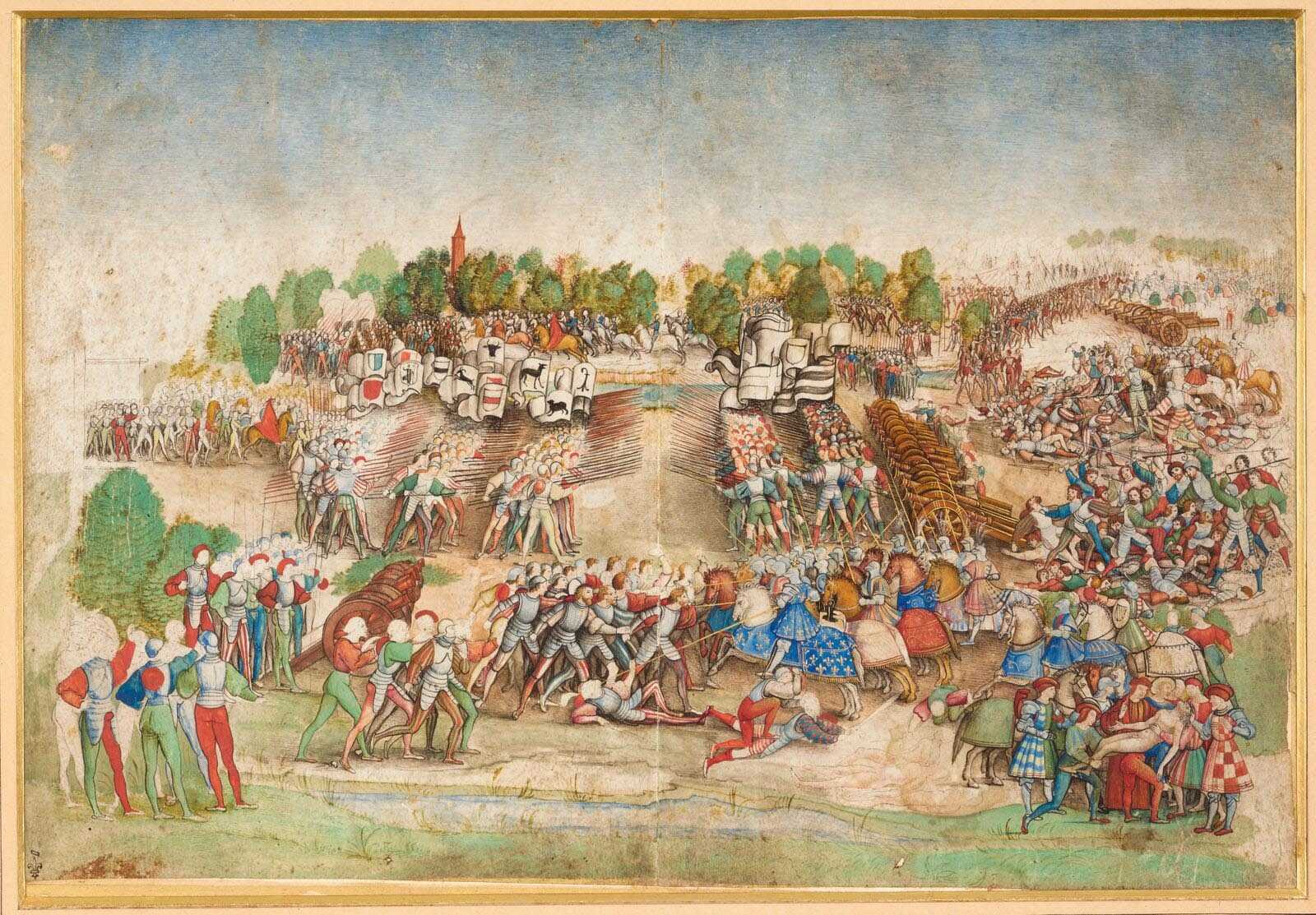 Двадцатилетний король оказался не робкого десятка: Франциск объявил о претензиях на Миланское герцогство, собрал армию и отправился отстаивать своё право с мечом в руках. Противники короля выставили четыре крупных армии, которые должны были лишить французов и венецианцев последних надежд на победу. Решающим аргументом в споре с могущественным французским монархом должен был стать корпус швейцарских наёмников, которых с французами связывали давние и непростые отношения. На сей раз швейцарцы выступили против Франциска и должны были добыть победу Священной лиге. Решающее столкновение произошло в середине сентября 1515 года у местечка Мариньяно, что в нескольких километрах к югу от Милана. Исход сражения должен был или закрепить Милан за Франциском или лишить французов богатейшей области Европы.