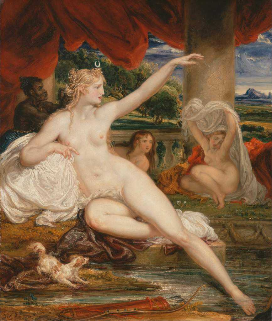 Картина Артемиды изображает легенду об Актеоне. Актеон, сильный и умелый охотник, однажды бродил по лесам Греции, пока не наткнулся на купающуюся Артемиду. Её сопровождали нимфы. Юные девы играли и развлекались, отдыхая от охоты.